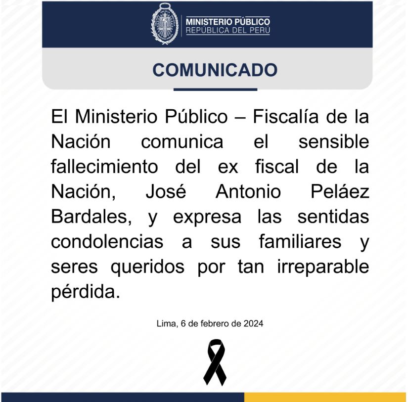 José Antonio Peláez Bardales, exfiscal de la Nación del Perú, falleció la noche del 5 de febrero a los 77 años. Su partida deja un vacío en el sistema judicial peruano y en la lucha contra la corrupción.