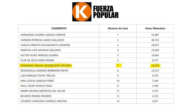 Sobre este caso, Fernando Rospigliosi es el primer accesitario de Fuerza Popular de la región Lima con 14 705 votos, según la Oficina Nacional de Procesos Electorales (Onpe). Para que ocupe la curul, la Mesa Directiva que preside Alejandro Soto deberá declarar, a través de una resolución, la vacancia de Guerra García Campos por la causal de fallecimiento. Ese mismo documento se notificará al Jurado Nacional de Elecciones (JNE) para que emita la credencial a favor del exministro del Interior. Luego tomará juramento ante el pleno del Congreso.
