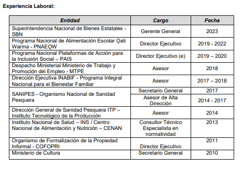 Después es que pasó a asesorar a la Dirección Ejecutiva del Programa Integral Nacional para el Bienestar Familiar (INABIF) y al Ministerio de Trabajo.