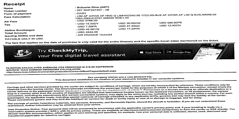 “Sí, es lo que cuesta un pasaje business, comprado en clase ejecutiva, con dos meses de anticipación”, confirmó el ministro en Punto Final. Latina Noticias pudo conocer, además, detalles del boleto aéreo adquirido para Dina Boluarte, presidenta de la República que, aunque al mismo país, pero con diferente ruta de retorno, costó casi una tercera parte que la del canciller: 4,633 dólares, vía Lima, Paris, Hong Kong.