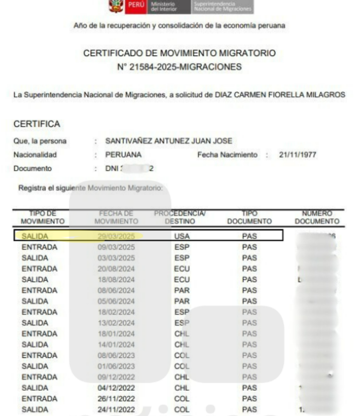 Juan José Santiváñez, exministro del Interior, salió de nuestro país el pasado sábado 29 de marzo, así lo se evidenció en su movimiento migratorio. Según se ve en el documento al que accedió Latina Noticias, el censurado ministro salió con rumbo a Estados Unidos.
