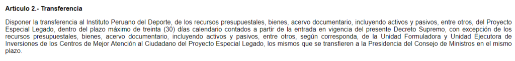 Esto se realizará a través de un proceso de transferencia con plazo de 30 días con la participación de la PCM, el Minedu, el IPD y una representante del Proyecto Especial Legado.