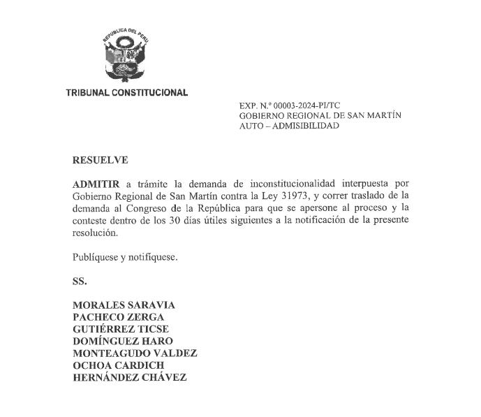 El Tribunal Constitucional ha aceptado la demanda presentada por el Gobierno Regional de San Martín contra la nueva Ley Forestal (Ley N.º 31973), aprobada por el Congreso y que busca revertir la posibilidad de archivar investigaciones y juicios contra taladores ilegales y empresas acusadas de deforestación ilegal, además de formalizar la propiedad sobre tierras forestales.