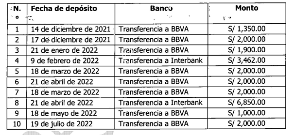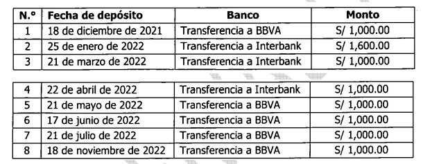 Así se menciona que Cecilia Salazar Mattos, quien asesoró a Torres, empezó a realizar los depósitos en diciembre del 2021 y culminó en julio del 2022. A lo largo de esos meses que puso de su sueldo cerca de S/ 24 562.