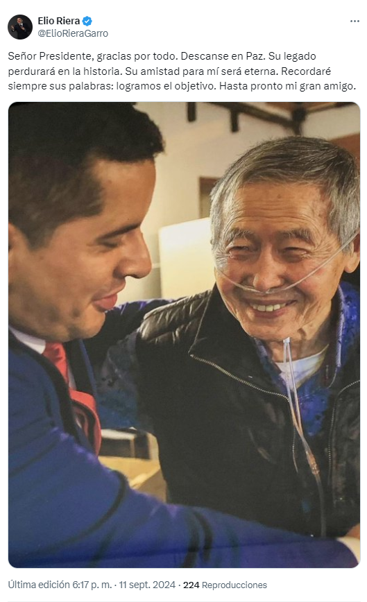 La información del deceso de Alberto Fujimori fue confirmada por su abogado, el Dr. Elio Riera en su cuenta de X (exTwitter). Minutos después, la noticia fue reconfirmada por su propia hija, Keiko Fujimori.