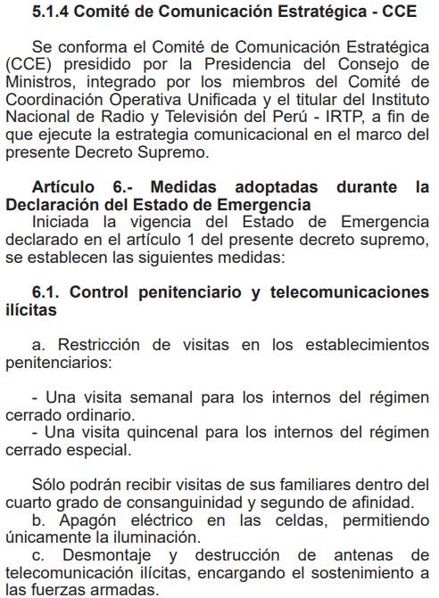 - Se restringen las visitas en los penales. Solo podrán ingresar los familiares dentro del cuarto grado de consanguinidad y segundo de afinidad.