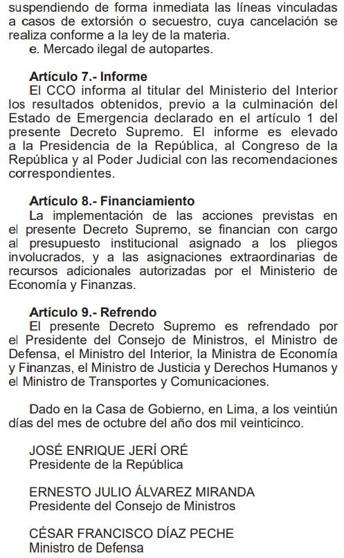 Este es el decreto supremo sobre el estado de emergencia anunciado por Jerí