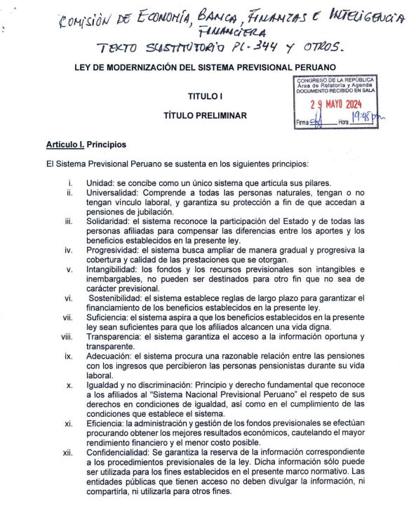 El Pleno del Congreso de la República verá mañana una reconsideración y un pedido de cuestión previa planteadas para que se discuta otra vez la propuesta de reforma integral del sistema de pensiones que fue respaldada en segunda votación medio de gran polémica con 38 votos a favor, 10 en contra y 16 abstenciones el último jueves.