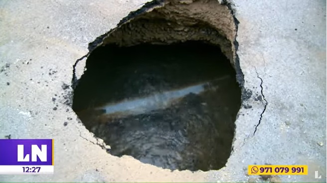 “Estaba estacionando para descargar y se hundió en la pista, ¿quien reconoce las cosas que se malogran? Se ha malogrado la carrocería, el parachoque y los faros. Siempre nos estacionamos aquí para descargar, pero no había pasado antes”, declaró el conductor, visiblemente, fastidiado.