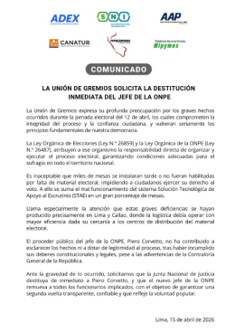 “Solicitamos que la Junta Nacional de Justicia destituya de inmediato a Piero Corvetto, y que el nuevo jefe de la ONPE remueva a todos los funcionarios implicados, con el objetivo de garantizar una segunda vuelta transparente, confiable y que refleje la voluntad popular”, finaliza el comunicado.