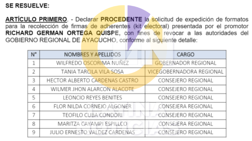 La Oficina Nacional de Procesos Electorales (ONPE) declaró procedente un pedido para entregar el kit electoral que permita el inicio de la recolección de firmas para revocar al cuestionado gobernador regional de Ayacucho, Wilfredo Oscorima, quien es investigado en la Fiscalía de la Nación por el caso ‘Rolex’.