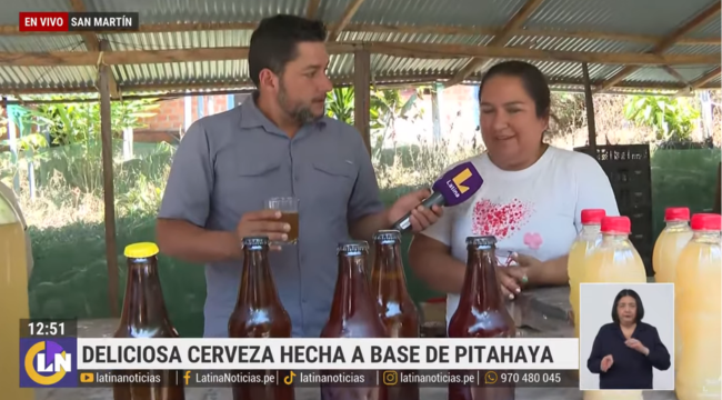 La Pitahaya un delicioso fruto nativo del Bosque de Protección Alto Mayo se ha convertido en el insumo principal de una familia para elaborar una refrescante cerveza artesanal. El emprendimiento se encuentra ubicado en la provincia de Rioja en el margen de la carretera IIRSA Norte hasta donde llegó el equipo de Latina Noticias como parte de la cobertura para el documental ‘Nuestros Bosques’.