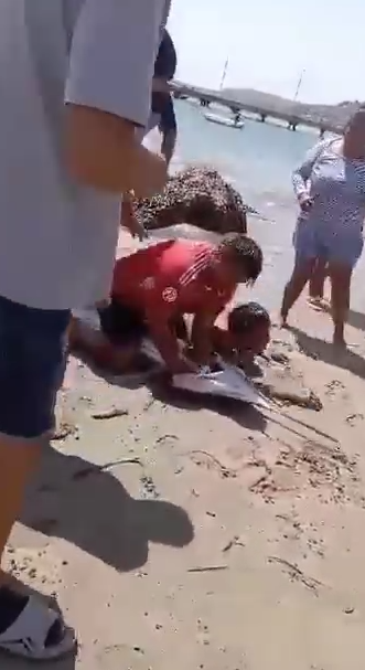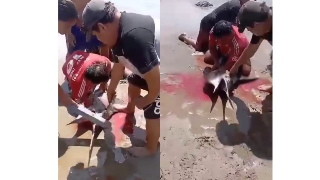 En una flagrante violación a las normativas de protección marina, un grupo de individuos fue captado pescando a un pez espada en la playa de Canoas de Punta Sal, Tumbes. Las imágenes muestran a los sujetos golpeando en la cabeza a la especie, con el fin de causarle la muerte.