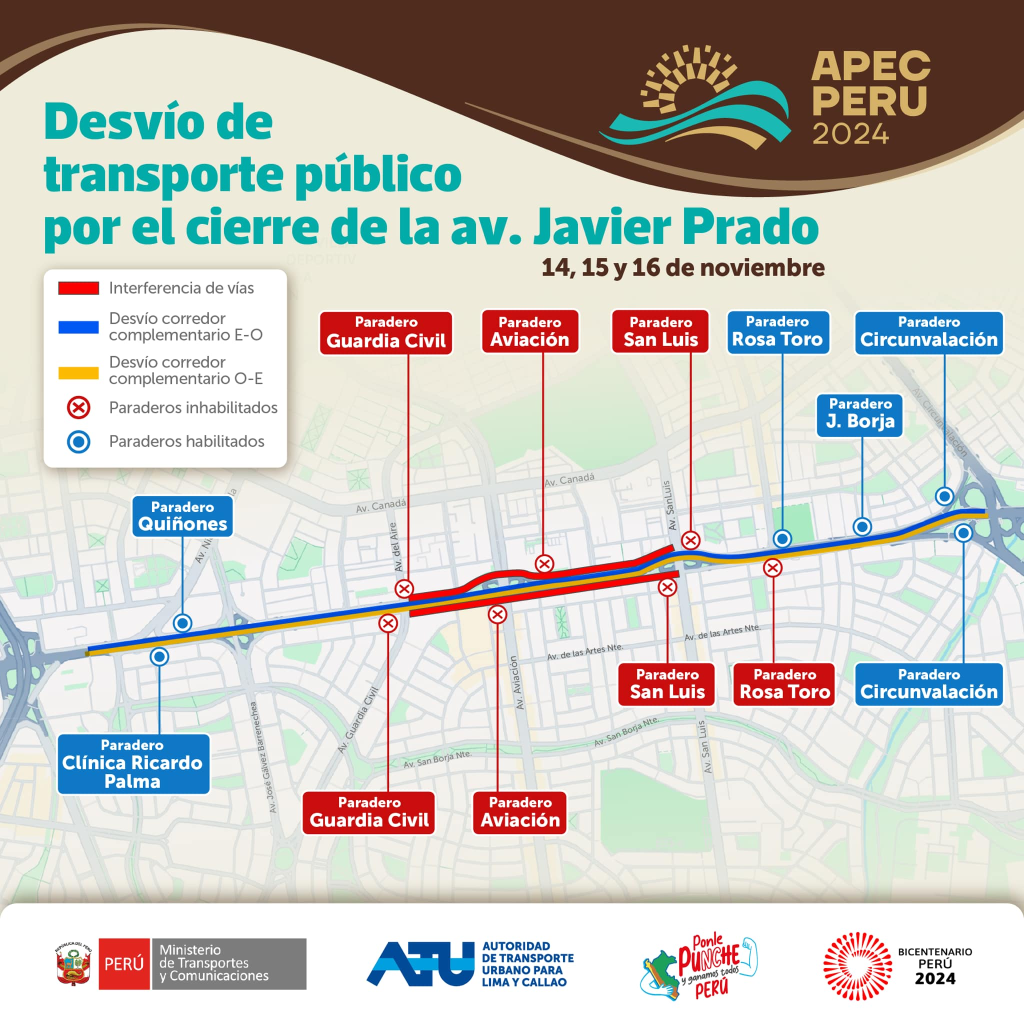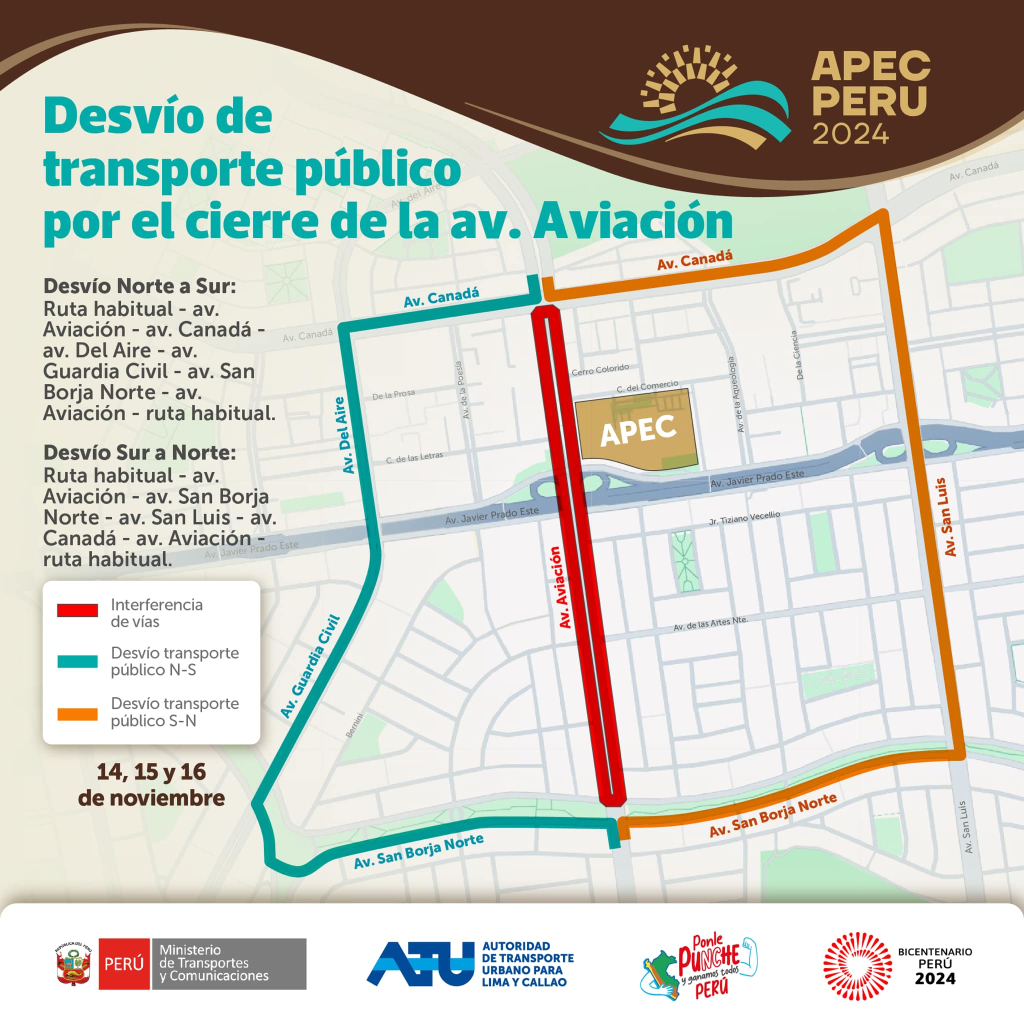 CIERRE DE CALLES POR APEC 2024: CONOCE LOS DESVÍOS VEHICULARES NORTE-SUR DE LA AV. AVIACIÓN
