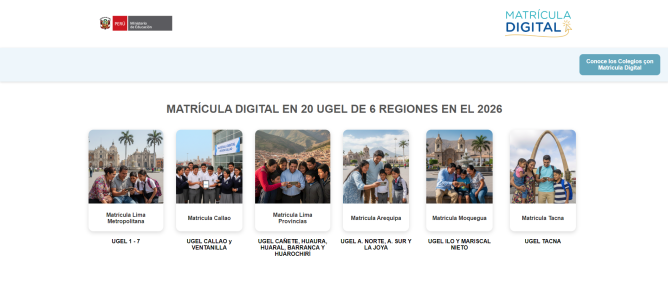 La matrícula vía online está habilitada en 20 Unidades de Gestión Educativa Local (UGEL) de seis regiones, entre ellas Lima Metropolitana y el Callao, beneficiando a miles de familias.