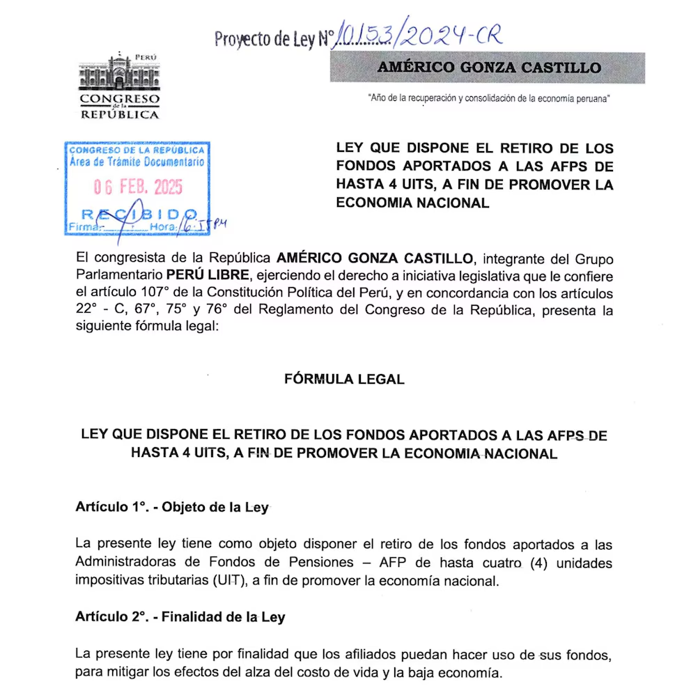Nueva propuesta de retiro de hasta 4 UIT se encuentra en evaluación en el Congreso, es decir, un acceso a S/21,400 de los fondos de la Administradoras de Fondos de Pensiones (AFP). Conoce AQUÍ qué partido está detrás de este nuevo planteamiento y en qué consiste.