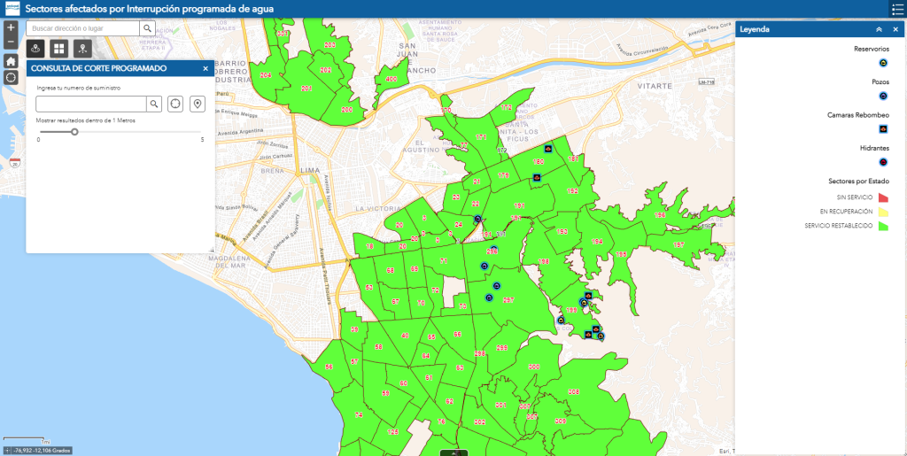 Consulta sobre los cortes de agua en cada distrito en el siguiente link de Sedapal.