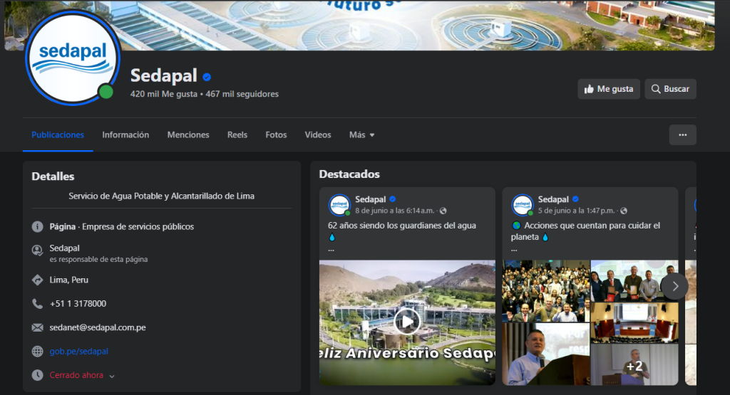 Sedapal es la empresa estatal de agua potable y alcantarillado de Perú. Se encarga de brindar servicios de agua potable, alcantarillado y tratamiento de aguas residuales a millones de personas en la capital del país, Lima, y sus alrededores. Fue fundada en 1962 y es una de las empresas más importantes de Perú.