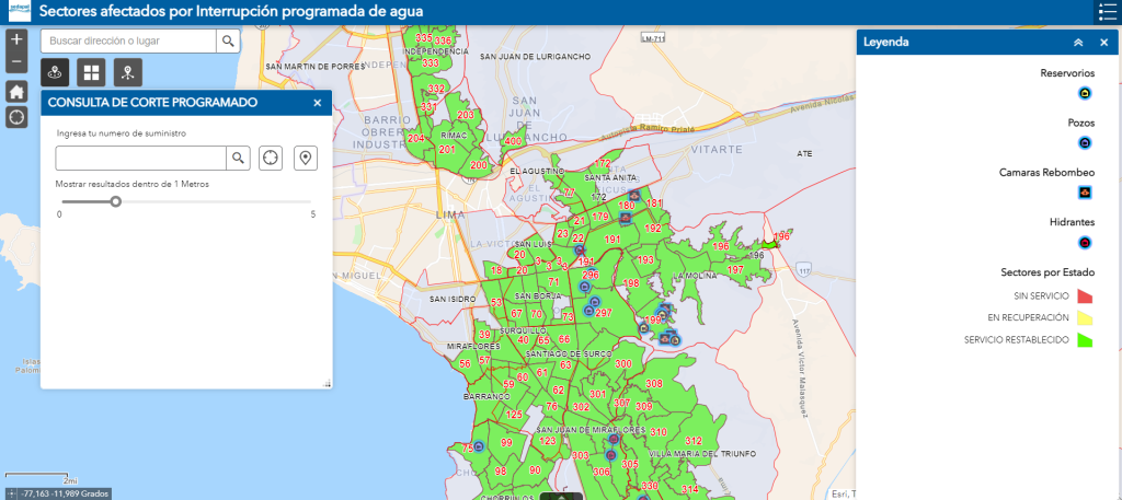 Consulta sobre los cortes de agua en cada distrito en el siguiente link de Sedapal o en este otro link.