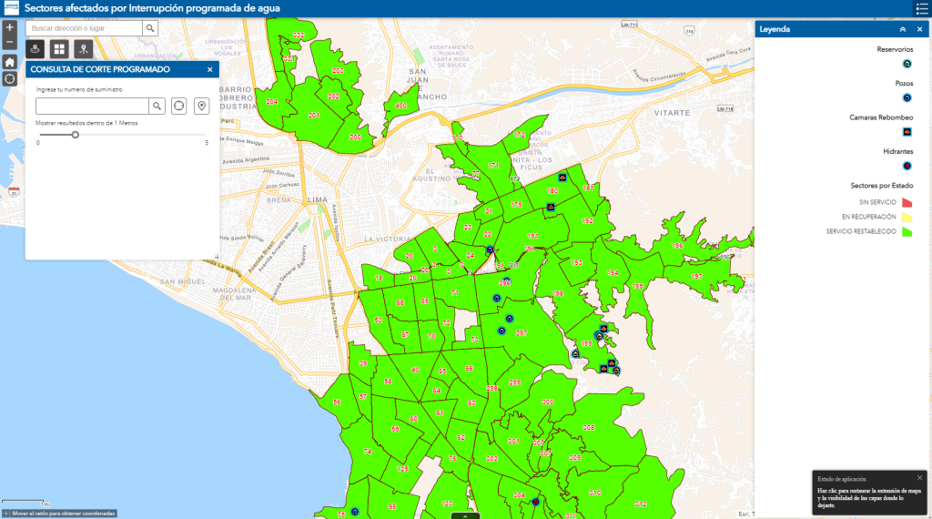 Consulta sobre los cortes de agua en cada distrito en el siguiente link de Sedapal o en este otro link.