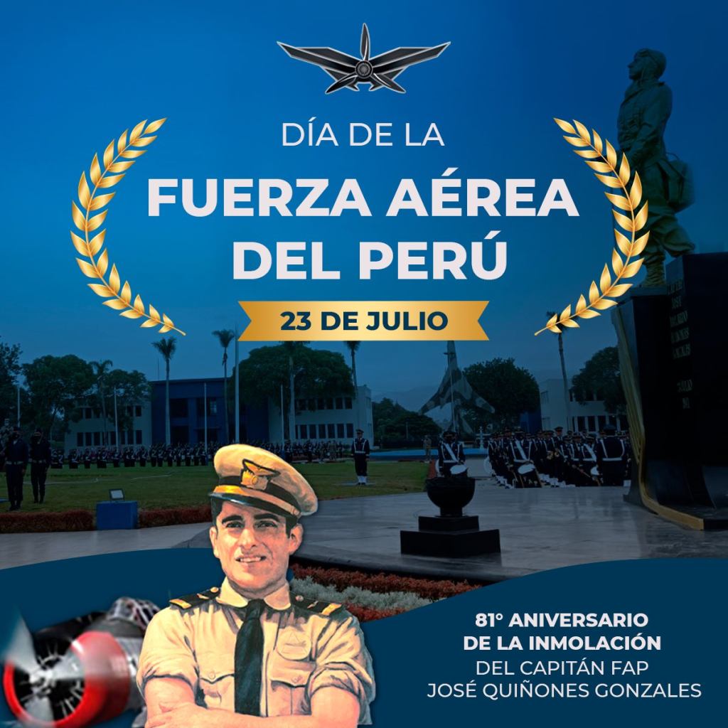 Según el Decreto Legislativo N.º 713, el próximo 23 de julio será feriado nacional porque es el Día de la Fuerza Aérea, cuando días antes se cumple con la declaración como héroe nacional del histórico capitán FAP José Abelardo Quiñones Gonzales. Esto fue aprobado por el Pleno del Congreso de la República en noviembre del 2022 por 104 votos a favor.