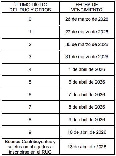 En ese sentido, el pago se realizará, por lo general, entre finales de marzo, abril e inicios de mayo de 2026, dependiendo del cronograma oficial de la Sunat y del RUC de cada empresa.