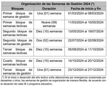 Cabe recordar que la Resolución Ministerial N° 587, aprobada en noviembre pasado, establece los lineamientos del año lectivo 2024, incluyendo dos semanas de vacaciones a mitad de año, del lunes 22 de julio al viernes 2 de agosto. Este descanso coincide con la celebración de la independencia de Perú, momento en el que los trabajadores también disfrutan de aguinaldos, gratificaciones y feriados nacionales.