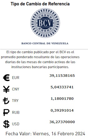 Por otro lado, el valor oficial del dólar, según el Banco Central de Venezuela (BCV), se presenta en 36.27 bolívares.