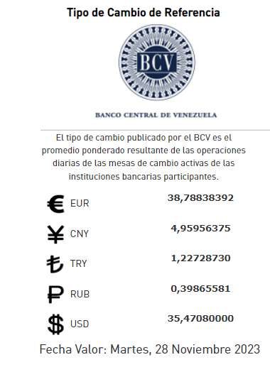 Por otro lado, el valor oficial del dólar, según el Banco Central de Venezuela (BCV), se mantiene en 35,47 bolívares.