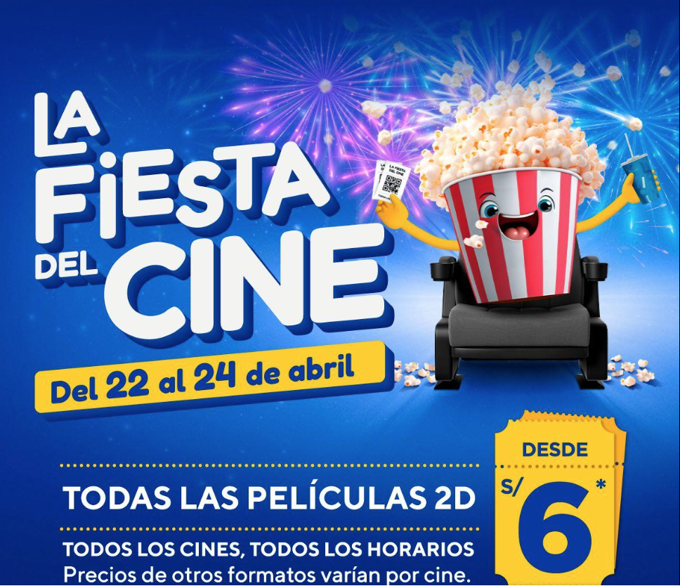 Desde el lunes 22 hasta el miércoles 24 de abril, todos los cines del país ofrecerán entradas desde tan solo S/6 soles para los formatos regulares 2D, mientras que los formatos especiales como Prime y 4DX estarán disponibles a mitad de precio.