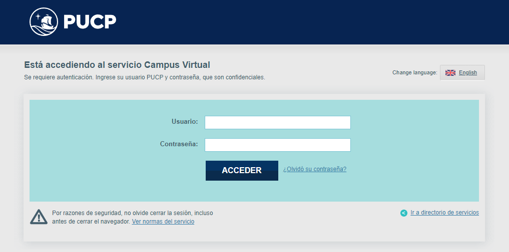 - Si te vas a registrar por primera vez en el campus virtual de la PUCP, crea tu usuario y contraseña. Si ya los tienes, ve al punto 2.