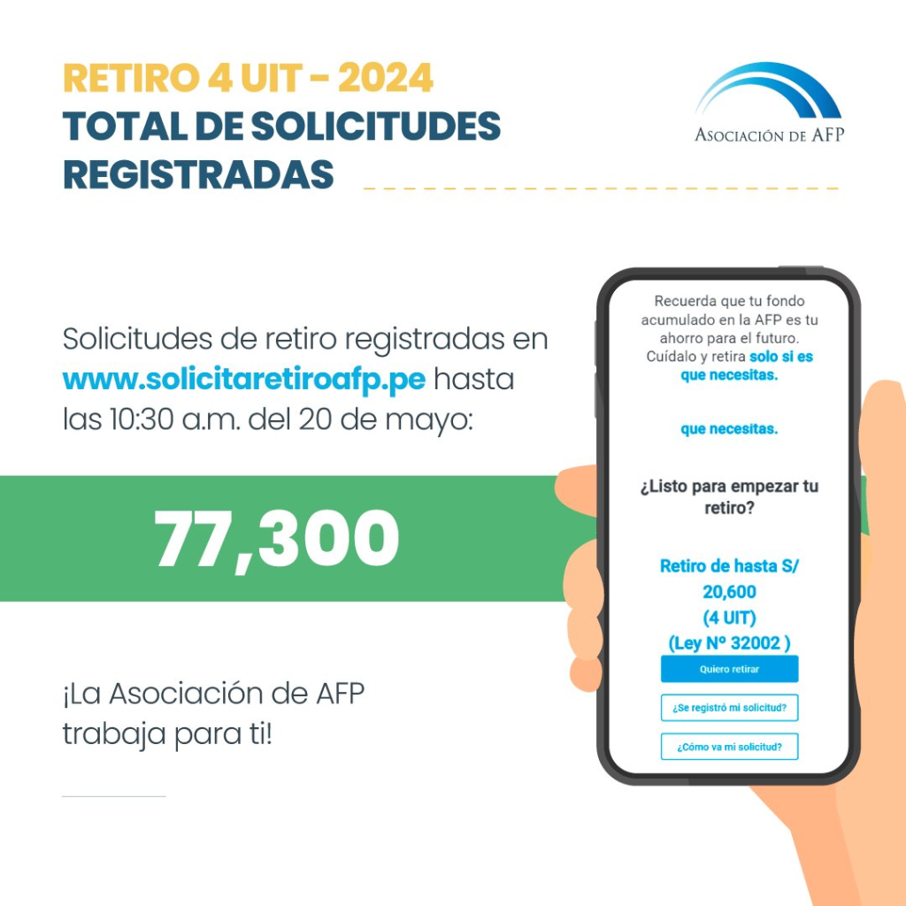 El proceso de retiro de las AFP, que inició este lunes 20 de mayo con las personas cuyo último dígito del DNI termina en 1, alcanzó la increíble cifra de más de 77 mil solicitudes en las primeras horas de HOY.