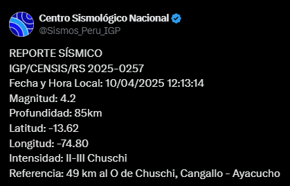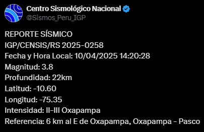 ÚLTIMOS TEMBLORES HOY, 12 DE ABRIL DE 2025, EN PERÚ