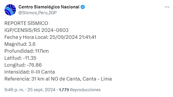 TEMBLOR HOY EN PERÚ, 25 DE SEPTIEMBRE 2024
