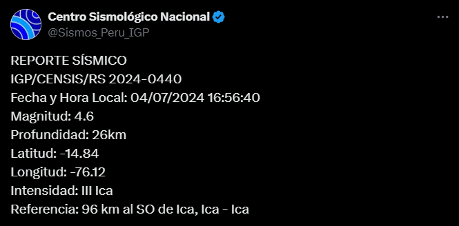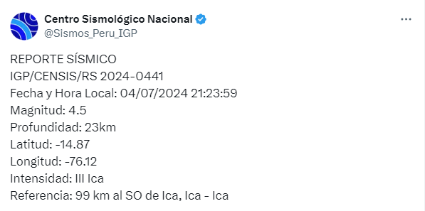 TEMBLOR HOY EN PERÚ, 4 DE JULIO 2024