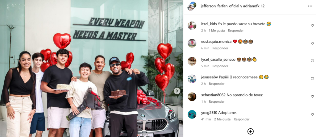 Farfán no escatimó en gastos para hacer de este momento una ocasión especial. El exjugador de Alianza Lima compartió dos emotivas fotografías de Adriano rodeado de sus amigos, visiblemente emocionado al recibir el auto de color plomo que su padre le obsequió.