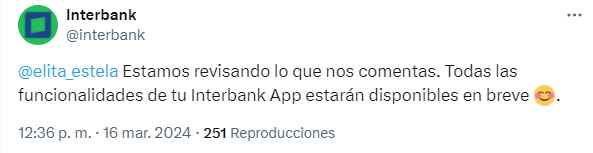 Este fin de semana, usuarios de X (antes Twitter) reportaron fallas en la aplicación de Interbank. Ante la ola de cuestionamiento, la entidad bancaria respondió que están haciendo las revisiones del caso y aseguraron darán una pronta solución.