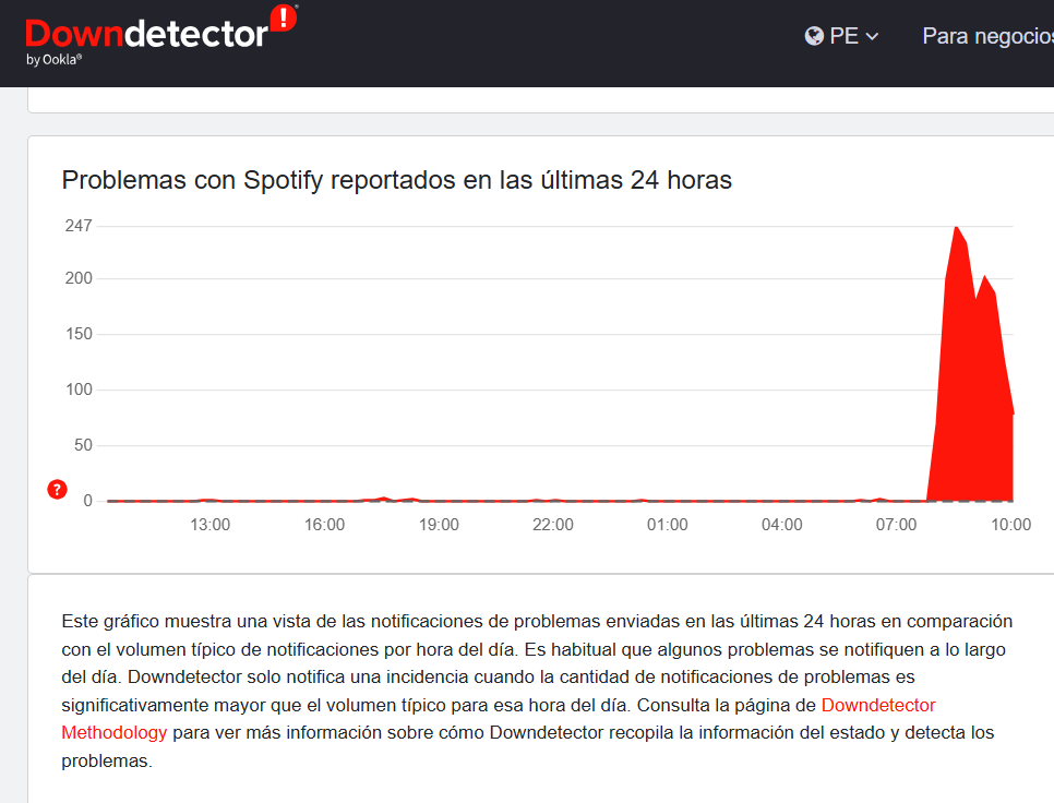 Los problemas comenzaron alrededor de las 7:00 a.m. (hora peruana), según reportes de Downdetector —portal que permite a los usuarios reportar en tiempo real los fallos en servicios digitales— y las fallas han afectado tanto a la aplicación móvil como a la versión web del servicio.