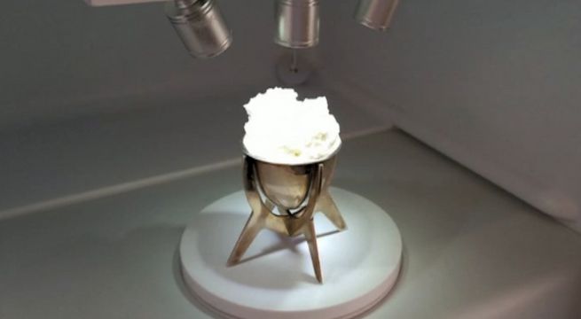 La artista, que radica en Londres, trabajó junto a Joanna Sadler, biotecnóloga de la Universidad de Edimburgo, quien logró descomponer componentes básicos para la creación del helado sabor a vainilla. Se trata del primer alimento elaborado a base de plástico que existe en el planeta.